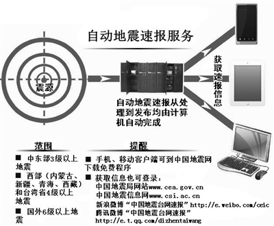 “速报是时间和精度的博弈。汶川地震以来,中国地震局大力推进自动地震速报技术研发和应用,我国自动速报技术取得了明显进步,自动速报的时效性和精度显著提高,误报率大大降低。”杨大克说。2013年4月1日起,中国地震局正式对外提供自动地震速报服务,通过网站、微博、短信、移动客户端等渠道向全社会实时发布自动地震速报信息。