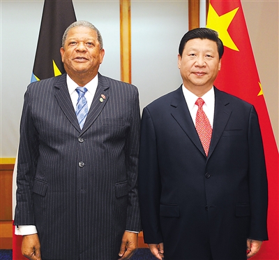 在会见斯潘塞时,习近平表示,安提瓜和巴布达是中国在加勒比地区重要合作伙伴。中方感谢安方在涉及中国重大核心利益问题上给予的宝贵支持。中方重视安方提出的民生、旅游等领域合作设想,愿同安方在环保和生态文明建设方面交流互鉴。今年是两国建交30周年,希望双方以此为契机,将友好合作推向更高水平。安方将轮值第六十八届联合国大会主席,中方愿同安方加强协调和配合。