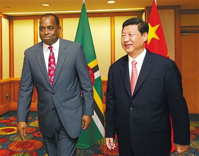 在会见斯凯里特时,习近平指出,多米尼克是中国的好朋友、好伙伴,两国在民生等领域开展了有益合作。双方要继续开展农业、医疗等领域技术转让和经验共享,做实做细经济技术合作,探索开发清洁能源,共同应对气候变化,扩大人员往来,加强人力资源培训合作。