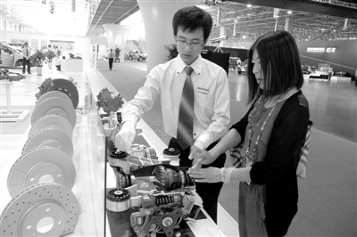 6月3日,技术人员在第三届长城汽车科技节上向观众讲解一款新变速器。3年来,长城汽车坚持每年在5月底6月初举办为期半个月的科技节。此次科技节展厅面积达7000多平方米,规模较前两届有更大提升,展示范围涵盖动力总成、新能源、材料、底盘、整车性能等14个展区,展品300余件,很多是尚未应用的前沿技术,代表了汽车科技的发展方向。 杨 星摄