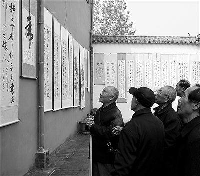 为丰富农民文化生活,河南许昌县张盘镇校尉张村向村民免费开放文化大院。文化大院不仅展示书画精品,而且为农民提供笔墨纸砚,供农民临摹。