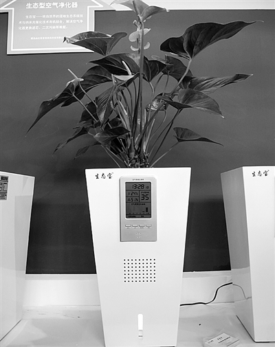 图为北京首创纳米科技有限公司研制的生态型空气净化器。它通过含有特定微生物的土壤来净化空气,有害物质被微生物降解后再被植物吸收,净化效果显著,节能环保。 本报记者 董碧娟摄