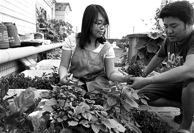 2011年冬天,为了吃到真正放心的绿色蔬菜,家住广州珠江畔的冼玉婷和刘光觅开始在天台上种菜。