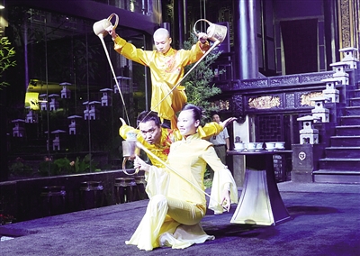 富有特色的成都盖碗茶民俗表演。