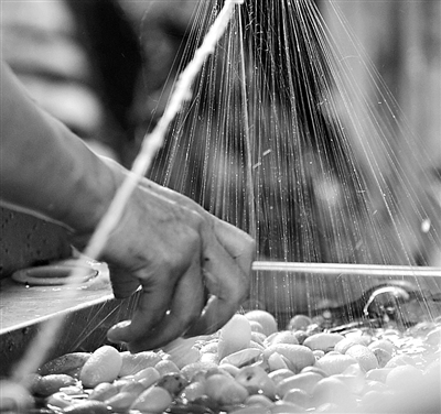 6月5日,浙江海宁市一家丝厂的工人正在从蚕茧中手工抽出丝头。