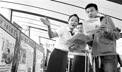 图 端午小长假期间,北京南站加大安全知识宣传力度,向旅客宣传与安全生产有关的法律法规和常识。