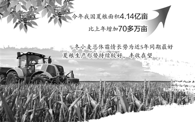 农业部种植业司司长叶贞琴告诉记者,今年夏粮生产形势面临的压力很大,产量基数高、生产成本高、灾害威胁大等不利条件多,在这种压力下丰收在望,“主要得益于政策力度加大、科技服务到位、防灾应对有效、气候总体有利”。这一总结也是这些年我国粮食生产形势的基本写照,正是得益于“政策好、人努力、天帮忙”等主要因素,我国夏粮有望实现“十连丰”,粮食生产保持了连年向好的大好形势。