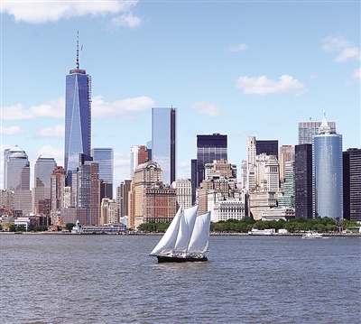 6月12日,一艘帆船从美国纽约曼哈顿的建筑前驶过。6月11日,美国纽约市长迈克尔·布隆伯格宣布一项应对气候变化报告,计划斥资200亿美元建造城市防洪墙、风暴防护堤等设施,增强这座全美最大城市应对极端天气的预防和防御能力。 新华社发