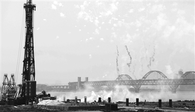 6月13日,湖北省黄梅县小池港两个5000吨级码头水下沉桩打下第一桩。黄梅县小池镇是湖北省新型城镇化的示范区,码头项目投资5.5亿元,是近年来小池建设的重大项目。 王 政摄