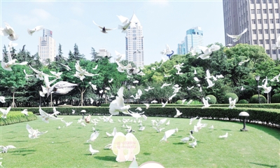 6月21日,“关禁闭”两个多月的上海人民广场鸽展翅高飞。伴随6月20日起上海有条件地恢复活禽交易,被“关禁闭”两个多月的近600只人民广场鸽子也获得解禁,开始放飞。此前,由于H7N9疫情,上海人民广场等几个场所的开放式鸽场关闭,鸽子全部入笼。 刘晓晶摄(新华社发)