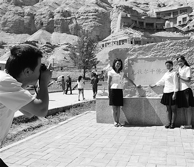 6月22日,游客在新疆阿克苏地区拜城县克孜尔千佛洞留影。阿克苏地区第九届文化旅游节近日拉开帷幕,活动将持续到10月末,旨在进一步叫响“龟兹故地、西域精粹”特色旅游品牌,做强当地旅游业。