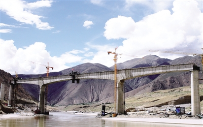 6月23日拍摄的顺利合龙后的雅江3#特大桥。当日凌晨,拉萨至日喀则铁路重难点控制性工程——雅江3#特大桥顺利合龙。雅江3#特大桥全长1484.75米,是拉日铁路全线跨度最大的特大桥。 王 孚摄(新华社稿)