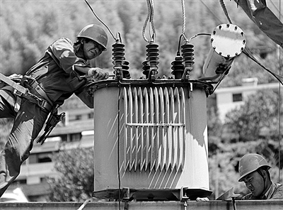在浙江省余姚市四明山镇悬岩村,电力工人正在拆除旧的变压器。近期,余姚市供电局为唐田上村、黄溪坑等山区的线路做好增容、改造工作,为当地夏季安全用电提供有力保障。