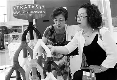 6月26日,观众在北京展览馆一展台前观看3D打印设备制出的产品。当日,2013北京国际工业智能及自动化展览会在京举办。展会为期3天,将展示自动化领域内的“新科技”、“新成就”。展会还将举办新技术论坛、新产品发布等活动。 本报记者 赵 晶摄