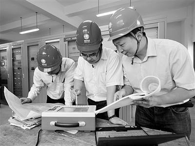 近日,220千伏舟山北变电站通过竣工验收,该变电站是浙江舟山首座220千伏无人值班智能变电站。图为工作人员正在对相关设备进行检测。 周 珊摄