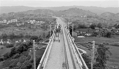 渝利铁路是我国铁路网沪、汉、渝、蓉大通道的重要组成部分,地处中、西部地区的结合部,西起重庆,东至湖北省利川市,与宜万铁路在凉雾站接轨。全线长度约264公里,列车设计时速为每小时200公里。 曹 宁摄(新华社发)
