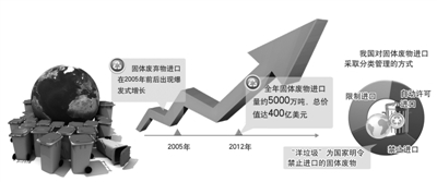 作为一种重要的再生资源,固体废物在国际经济活动中扮演着日益重要的角色。以废金属为例,近年来国际废金属市场出现了供不应求的局面,欧盟、美国等国家采取措施限制该类固废物出口,而日本、韩国等国家以及印度、越南等国家,在国际市场上已经与我国形成了较强的竞买关系。我国固体废弃物进口在2005年前后出现爆发式增长。去年我国全年固体废物进口量约5000万吨,总价值达400亿美元。