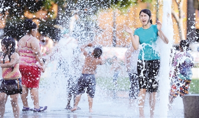 孩子们在美国加州北部圣何塞市中心一处喷水池戏水。圣何塞市近日最高温度一度达38.9摄氏度,市政府启用10个“降温中心”供民众使用。6月30日以来,加州北部城市旧金山及其周边地区持续高温,促使地方政府免费开放公共设施,帮助民众避暑。 新华社发