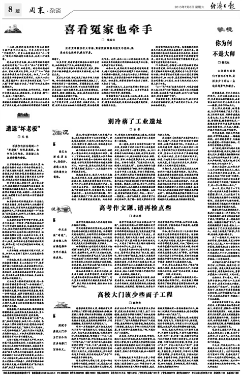 诸如此类的题目,或是文不对题,或是意义难辨,或是带有错字,或是有违常理,着实让考试学生和阅读者“冒汗”。有人甚至认为高考作文题就是在让学生“参禅”,若无那当头的棒喝,恐怕难以出来“满分”的作文。