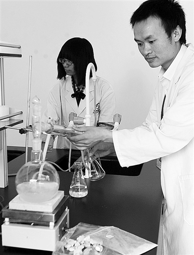 2013年6月初,云南万兴隆集团高原生物科技产业园数条农副产品生产线正式投产,一批深加工高品质绿色产品下线上市。该民营企业在建厂、研发和试制产品阶段,就开始与12所国内外高校和科研机构签订技术合作协议,集成各方优势科技资源开发高原农业制品初见成效。图为产业园的科研人员在进行小黄姜含硫量检测实验。 陈海宁摄(新华社发)