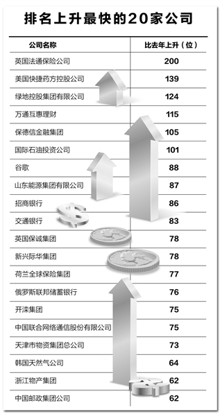 从榜单上看,今年中国上榜公司的主体仍是国有企业,且位次靠前。新增加的16家企业中除正威集团和民生银行外,大部分是国企(包括金融类国企)。不少国企在榜单上的位次都大幅提升。如国机集团由去年的第367名上升到第326名,前进了41名;新兴际华集团由第484名上升到第406名,前进了78名。而新上榜的公司中国有控股企业也占了大多数。如国药集团、中国有色集团等。