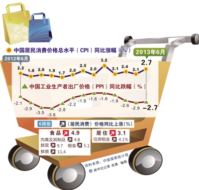 国家统计局9日公布的数据显示,6月份居民消费价格指数(CPI)同比上涨2.7%,环比持平,涨幅比5月份扩大了0.6个百分点。今年上半年,CPI同比增长2.4%。