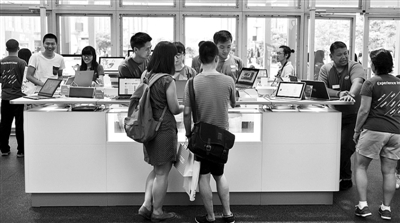 上图:7月11日,工作人员在英特尔科技芯体验全球巡展北京站预展活动上向参观者介绍展品。
