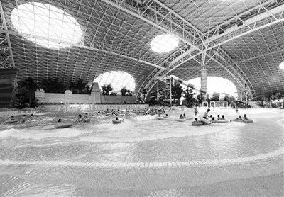7月17日,游客在“天山海世界-米立方”大型室内恒温水上主题公园戏水。这座刚刚建成的室内水上主题公园坐落在天津市津南区小站镇,建筑面积4.3万平方米,全年室内恒温30摄氏度,水温28摄氏度,人们可以一年四季在公园内体验水上休闲运动的乐趣。