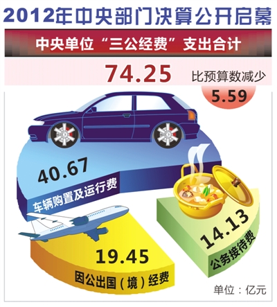 有报道称,去年82个中央部门“三公经费”决算比预算压缩4.2亿余元,但根据2012年中央决算报告,去年汇总后的中央部门“三公经费”决算支出比预算数压缩