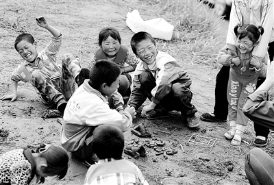 7月26日,甘肃岷县禾驮乡拉路村临时安置点,孩子们正在玩耍。经过几天的抢险、安置,灾区民众的生活正在逐步恢复正常。