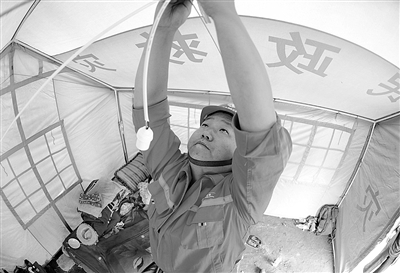 甘肃岷县重灾区电力工人抢修线路,确保受灾群众生活生产用电。