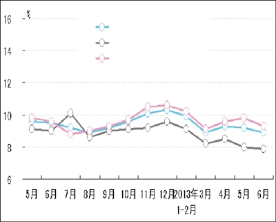 二季度,工业企业固定资产投资总额同比增长15.7%,比一季度增速回落1.7个百分点,继续呈现波动回落的态势。工业内部各行业投资走势显著分化。其中,位于产业链上游的采矿业以及水电燃气生产供应业投资增长明显放缓;产能过剩较严重的纺织、钢铁等行业投资维持低水平增长;与战略性新兴产业相关的医药、环保、高端装备等行业投资保持较快增长;汽车、铁路等行业投资呈逐渐加快态势。鉴于转型升级是当前我国经济工作的首要任务,未来这一结构性差异可能进一步显现。