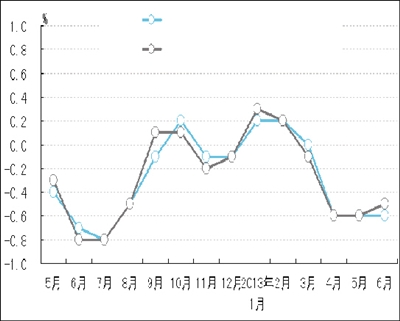 二季度各月工业生产者购进价格和出厂价格环比双双回落。4、5月,工业生产者购进价格和出厂价格连续两个月环比下跌0.6%,6月,分别再环比下跌0.5%和0.6%。其中,与重化工业相关的生产资料价格的跌幅明显高于与消费相关的生活资料价格的跌幅,尤其是煤炭、钢铁、有色、化工原料等上游工业品价格跌幅位居前列。生产资料价格的回落与需求增长低于预期有关;而生活资料价格的回落与消费增长放缓有关。未来工业品价格水平可能继续在低位波动。