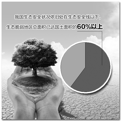林地、湿地和物种是重要的生态资源和生存资本。近年来,我国生态资源保护全面强化,林区民生不断改善,生态林业民生林业发展水平逐步提高。然而,我国生态安全状况依旧处在生态安全线以下,生态赤字大,生态欠账多,生态脆弱地区总面积已达国土面积的60%以上,生态状况远不能满足经济发展的需要和人民群众的期盼。