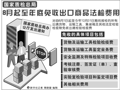 据新华社北京8月1日电 (记者朱立毅) 质检总局和海关总署1日发出公告宣布,将对1507个海关商品编码项下的一般工业制成品不再实行出口商品检验。这一调整将从今年8月15日起施行。
