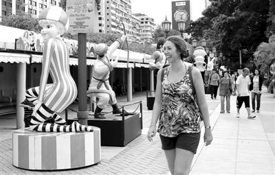 7月27日,游客在香港九龙公园漫画星光大道参观。揭幕开放不到一年的香港漫画星光大道,受到游客青睐,成为访港游客的新看点。