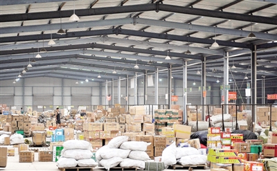 8月2日,山东佳怡物流公司2万平方米中转仓库内堆满等待发送的零担货物。近期,持续高温使得济南物流快递行业异常火爆。