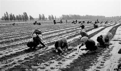 从河南安阳到此种菜的青年肖培申,从菜地中伸起腰来对记者说:“我承包了100亩种菜,用了政府免费推广的膜下滴灌技术,今年的菜价不错,估计纯挣50万元没问题。”
