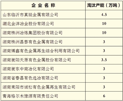首批淘汰落后产能部分企业名单铅(含再生铅)冶炼行业