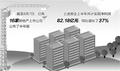 整体来看,上半年房地产板块业绩总体呈现增长势头。Wind统计数据显示,截至7日,已经有16家房地产上市公司公布了半年报,数据显示,上述房企今年上半年共计实现净利润82.18亿元,同比增长了37%。已披露的业绩预告中也显示,上半年超过六成的房地产上市公司业绩实现增长。