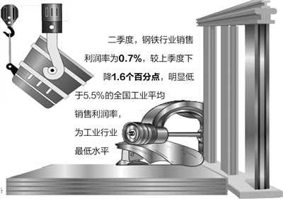 点评:当前,我国钢铁工业正处在微利时代,并将长时期面临“高产能、高成本、低效益”的局面。据中经钢铁产业景气指数报告显示,二季度,钢铁行业销售利润率为0.7%,较上季度下降1.6个百分点,明显低于5.5%的全国工业平均销售利润率,为工业行业最低水平,主营业务基本处于亏损边缘。