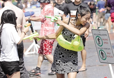 8月中旬, 在加拿大温哥华史丹利公园,人们参加水枪大战。温哥华史丹利公园内举行第七届温哥华水枪战活动,民众“装备”不同类型的水枪互相追逐射水,为炎炎夏日带来清凉感受。