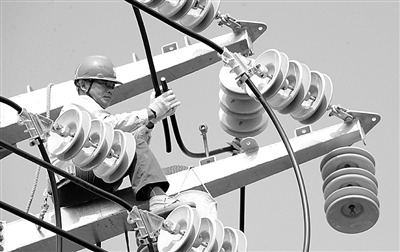 江苏省泰州市姜堰开发区电力施工人员正在对该区黄村变20千伏开发区四回线路进行增容和改造。此项工程是该区今年配电网重点工程之一。