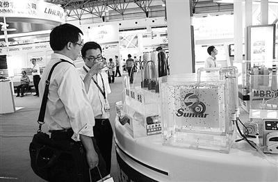 历时8年,新加坡、德国、中国三个实验室的膜专家们共同研制出新型纳滤水机,该机器采用超滤滤芯和纳滤滤芯的新组合,替代了传统低效多级的传统过滤。图为在第13届中国国际环保展览会上,三达净水工作人员为顾客试喝净化之后的水。