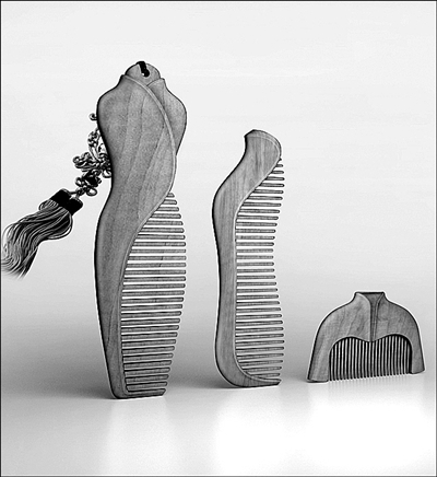 图①、②、③:从上至下,分别为选手设计的仕女造型梳子、手链和莲蓬熏香。
