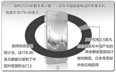 其实,当全球价值链成为当今国际贸易的主导特征时,发达经济体、新兴经济体和发展中国家就连成了一体。新贸易统计方法的关键改变就在于把全球价值链因素纳入了核心。它以单个商品在全球生产链上不同经济体产生的附加值为基础进行贸易统计,而不仅仅统计各经济体进出口账面数据。亚洲开发银行发布的一项研究报告显示,2009年,中国在苹果手机贸易上对美国出口值约为20亿美元,如果以附加值测算,中国在这一贸易上对美出口额实际仅为7300万美元;而中国当年也从美国进口1.215亿美元苹果手机零部件,如果以附加值测算,中国在这项贸易上对美实际存在4800万美元的贸易逆差,而不是顺差。