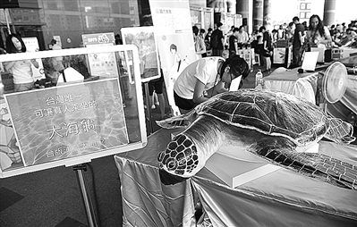 2013台湾“科学玩意节”8月24日开幕。图为一款可供真人在水面乘坐的“机器大海龟”在展示。