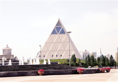 图为哈萨克斯坦首都阿斯塔纳的和平和谐宫。阿斯塔纳原名“阿克莫拉”,历史上曾是古代丝绸之路上一个重要的站点。哈萨克斯坦地跨亚欧两大洲,阿斯塔纳位于亚欧分界线附近。 (新华社发)