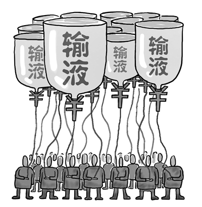 数据显示,我国输液市场年容量超过100亿瓶(袋),相当于每人输了8瓶液,远高于国际上人均2.5瓶至3.3瓶的水平。过度输液的重要原因在于医院、医生和医药代表之间的利益驱动。静脉药品的价格大多高于口服药品价格,使用的越多,医院就能够从中获取更多的经济效益。一些医院因此根据静脉输液产品使用的数量,来考核科室和医生的绩效,在某些医生的“诱导”下,不少基层