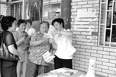 北京农商行通州西集支行工作人员向老人宣传识别假币知识。蒋立红摄